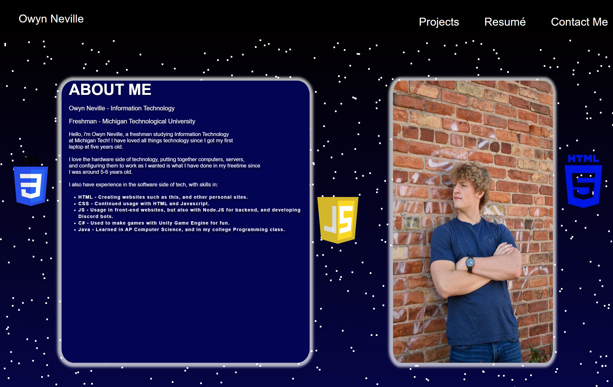 Hello, I'm Owyn Neville, a freshman studying Information Technology at Michigan Tech.